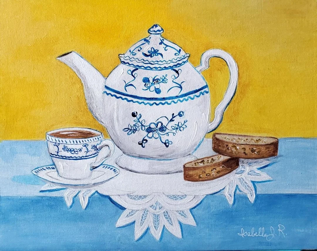 Inspired by an old Favorite tea set, Isabelle recreates a warm nastalgic painting called “Tea Time”.