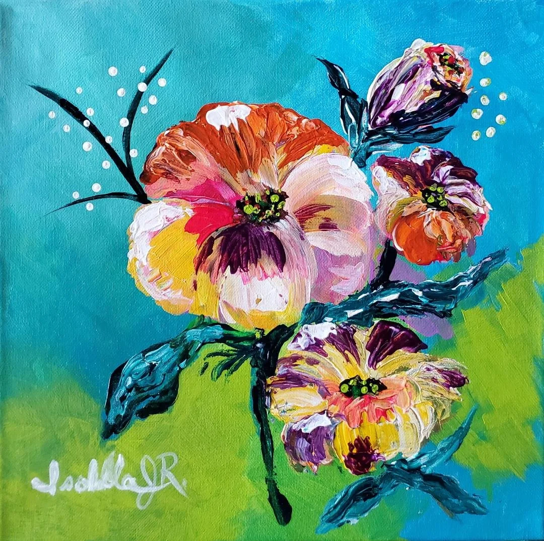 “Blooming Rainbow” is a pallet knife painting, inspired by having fun with color.